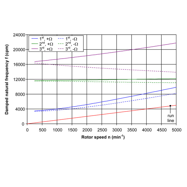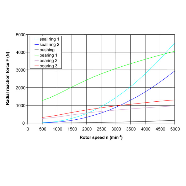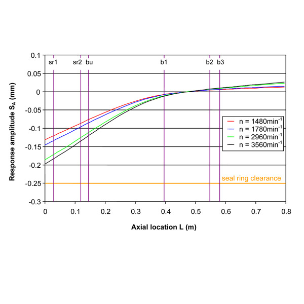 Calculation of rotor response caused by static and dynamic hydraulic radial forces, own weight of the rotor and rotor imbalance.